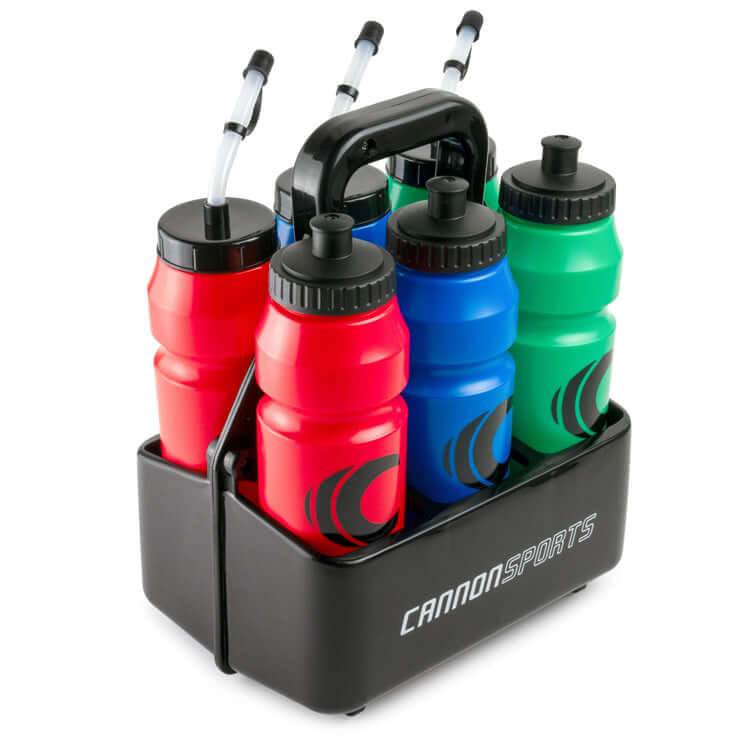 The Cannon Sports Squeeze Bottle Carrier keeps you hydrated on the go. This durable carrier holds six 28-to-34-ounce squeeze bottles securely, allowing easy access when you need a drink during practices, games, or workouts. Made of lightweight and durable materials, the carrier with Cannon Sports logo is the perfect bottle carrier solution for all sports. A touch of style and functionality, the bottle carrier makes staying hydrated simple for athletes of all ages and sports. Six individual pockets hold bottles upright and securely, so they are protected from leaks. Quickly grab the bottle you need without stopping the action. Stay fueled and hydrated from the sidelines to the playing field with the versatile Cannon Sports Squeeze Bottle Carrier.